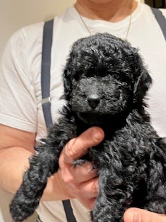 Vor skønne Nelly har fået hvalpe den 31.12.25, som billederne viser, 2 sorte og 2 lyse.
